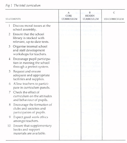 supports either the Core Curriculum (Column A), the Hidden Curriculum